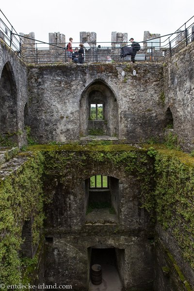 Schön finden wir, dass wir auf den einzelnen Etagen einiges im lockeren Erzählstil über die Burg und die Funktion der einzelnen Bereiche erfahren. So passieren wir im Untergeschoss das »Murder Hole«. Es befindet sich direkt über den Eingang und ermöglichte es, ungebetenen Gästen von oben ziemlich übel zuzusetzen.