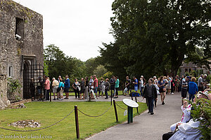 Apropos an der Reihe: als wir den Park wieder verlassen, staunen wir nicht schlecht, als wir nochmals beim Blarney Castle vorbeilaufen. Dort, wo wir am frühen Vormittag einfach durchspazieren konnten, hat sich bis zur Mittagszeit eine riesige Schlange gebildet. Während es unten nur noch im Schneckentempo vorangeht, ist oben Eile geboten.